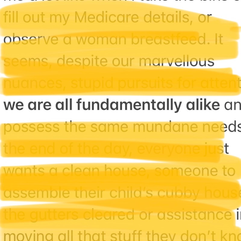 While the chicken comes to a boil, I fall on the couch and scroll Airtasker for replies to my advertisement regarding an end-of-lease clean. I experience a rush of dopamine when I see the green number eight illuminated over the small letter symbol. Several notifications, piled on top of one another, read: People are lining up to do your task ‘Clean my 2 bedroom / 1 bathroom apartment’ It’s time to make a decision- who will you choose? The Man says I ought to do it myself. But I replied I have much more important things to do, which I’m starting to see I do not. I cannot hear the chicken bouncing around the saucepan yet, so I scroll the Airtasker feed properly for the first time. It is extraordinary how many people want jobs done, even more extraordinary that people are lining up to do them. The jobs are all ordinary variations of the same thing. As I scroll deep into yesterday, the day before, and last week, a sensation washes over me a lot like when I take the bins out, fill out my Medicare details, or observe a woman breastfeed. It seems, despite our marvellous nuances and stupid pursuits for attention, we are all fundamentally alike and possess the same mundane needs. At the end of the day, everyone just wants a clean house, someone to assemble their child’s cubby house, the gutters cleared or assistance in moving all that stuff they don’t know how they managed to collect over the years.